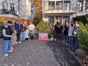 Im Vorfeld der Feier übernahmen die Schülerinnen und Schüler die Pflege dieses Gedenksteins, schmückten ihn mit Blumen, entzündeten Kerzen und ergänzten eine kleine Informationstafel. Durch diese Gesten hielten sie die Erinnerung an Ilse Silbermann wach und machten zugleich deutlich, wie wichtig Zivilcourage, Vielfalt und Menschlichkeit auch heute sind.