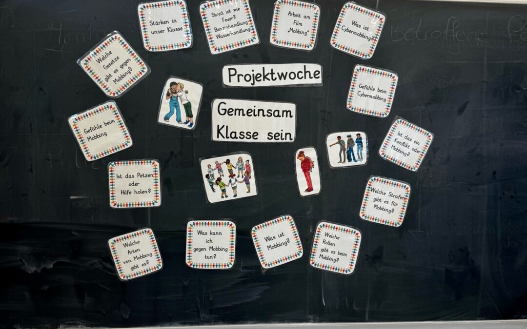 Im Rahmen der Projektwoche „Gemeinsam Klasse sein“ setzten sich alle fünften Klassen intensiv mit dem Thema Mobbing auseinander. In verschiedenen Unterrichtseinheiten wurde gemeinsam erarbeitet, was Mobbing ist, welche unterschiedlichen Formen es gibt und wie Mobbing aktiv verhindert werden kann.