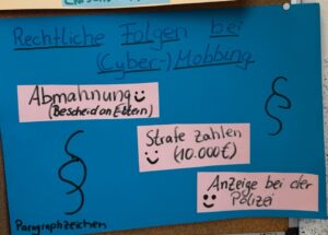 Die Projektwoche machte allen deutlich, wie wichtig ein respektvolles Miteinander ist. Denn eine stabile Klassengemeinschaft, in der Schüler*innen und Lehrkräfte achtsam miteinander umgehen, stellt die wirksamste Grundlage zur Prävention von Konflikten und Mobbing dar.