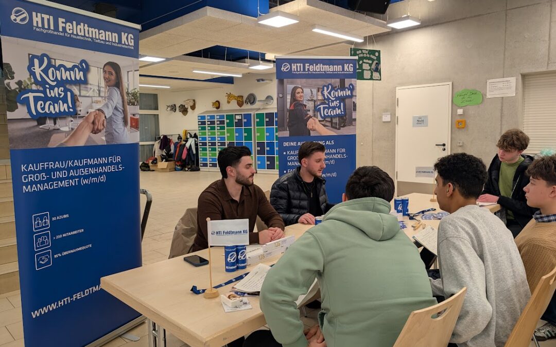 Konzentriert sitzen unsere Schüler*innen in kleinen Gruppen an den Messeständen und tauschen sich mit den Ausstellern aus – Physiotherapie, Kauffrau für Groß- und Außenhandel oder Bestattungsfachkraft? Es gab wieder einiges zu entdecken auf unserer BÖRSE am 19.2. und mit den toll ausgestatteten Ausstellungsständen der Unternehmen wehte echtes Messe-Flair durch unsere Mensa.